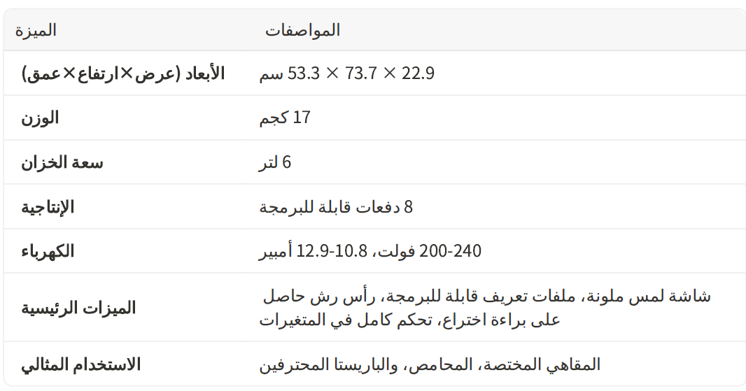 في كل كوب. إنها الأداة المثالية للباريستا الذي يريد إبراز أفضل ما في كل نوع من أنواع القهوة