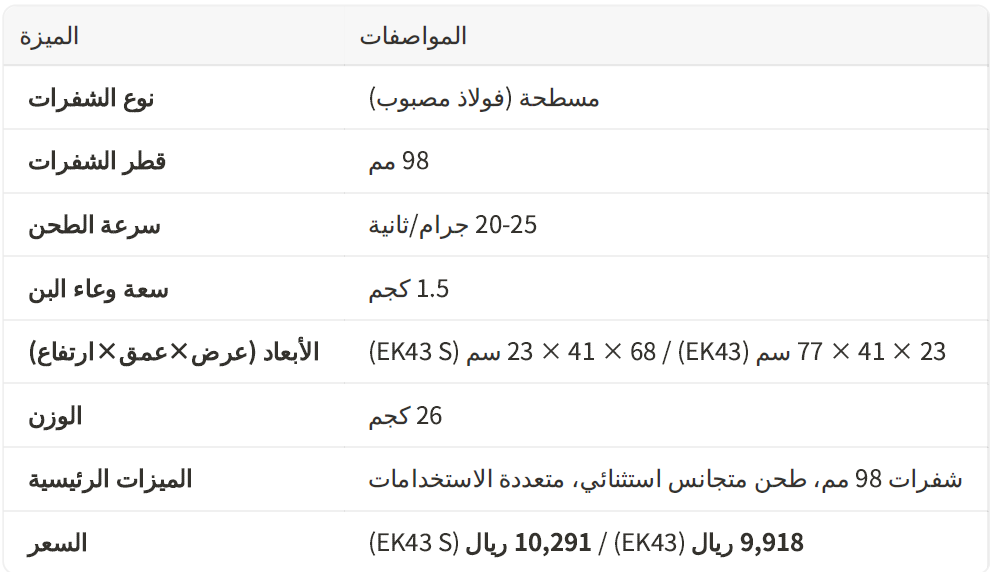 أيقونة في عالم القهوة المختصة، وتشتهر بقدرتها على إنتاج طحنة متجانسة بشكل استثنائي EK تُعد 43