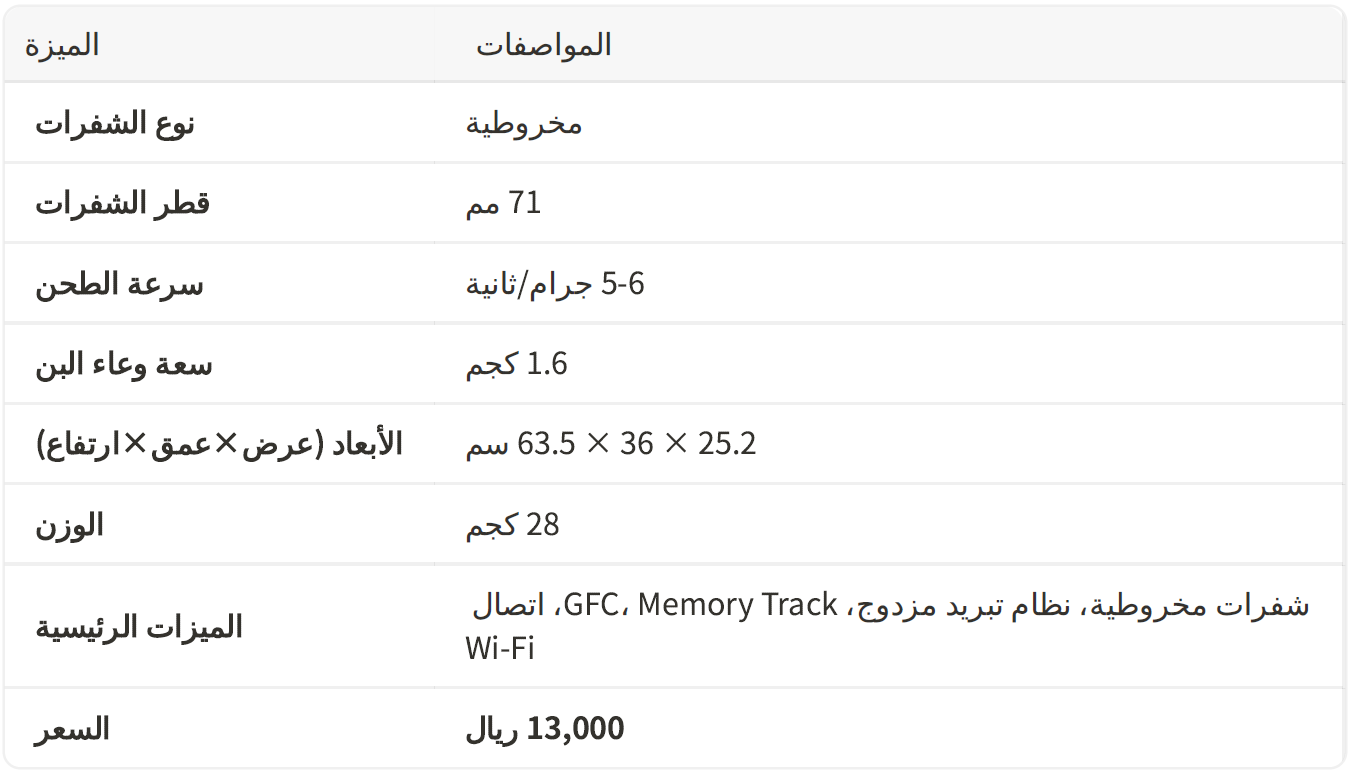 ونظام Grind Flow Control (GFC) ارتفاع درجة حرارتها، مما يحافظ على نكهة القهوة. تتميز بنظام